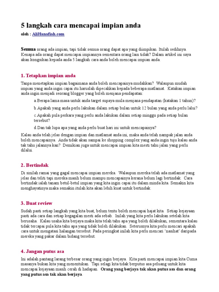Cara Mencapai Impian Dan Kesuksesan 10 Langkah Mencapai Impian