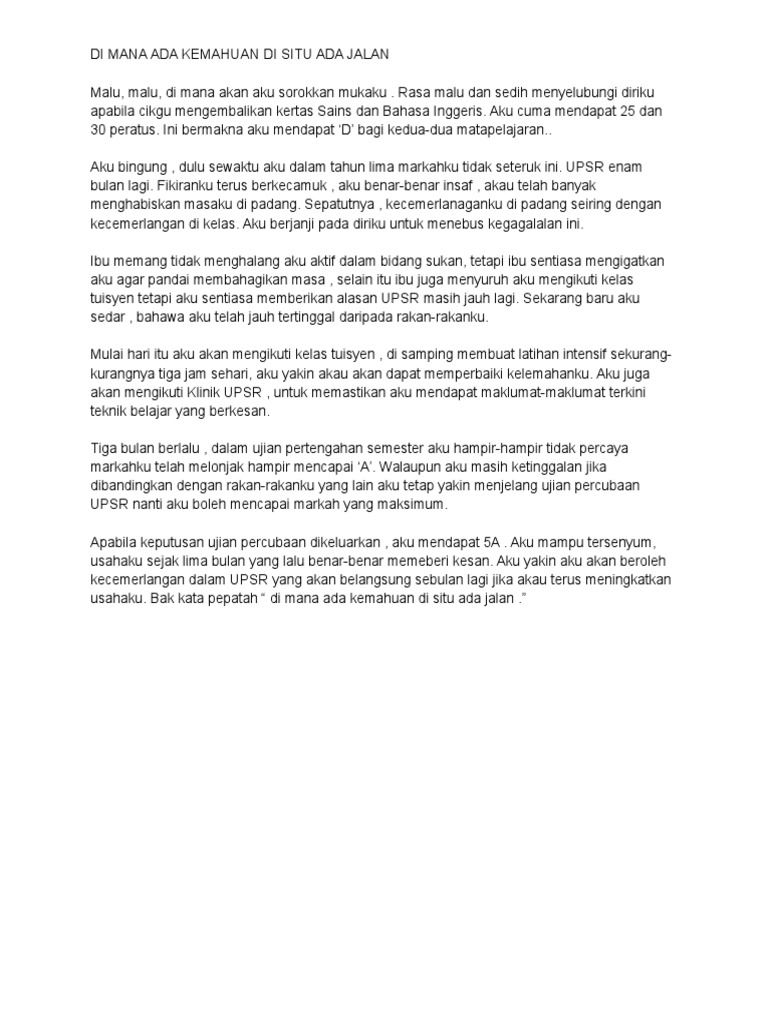 Maksud Dan Contoh Ayat Di Mana Ada Kemahuan Di Situ Ada Jalan